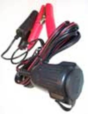 This handy little power adapter lets you charge your OmniPro sprayer using the battery on your truckmount. Just clip the red clamp to the positive post on the battery and the black clamp on the negative post. Then plug your OmniPro into the adapter and yo