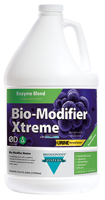 BIO-MODIFIER XTREME is a concentrated, active solution with bacteria, hydrocide and an extreme modifier designed to eliminate odors from urine, mold, mildew, organic rot, vomit, smoke, skunk and protein fire residue. Bio-Modifier Xtreme changes the odor at the molecular level and works in a shorter time frame than typical bacteria/enzyme products to digest the organic source material.