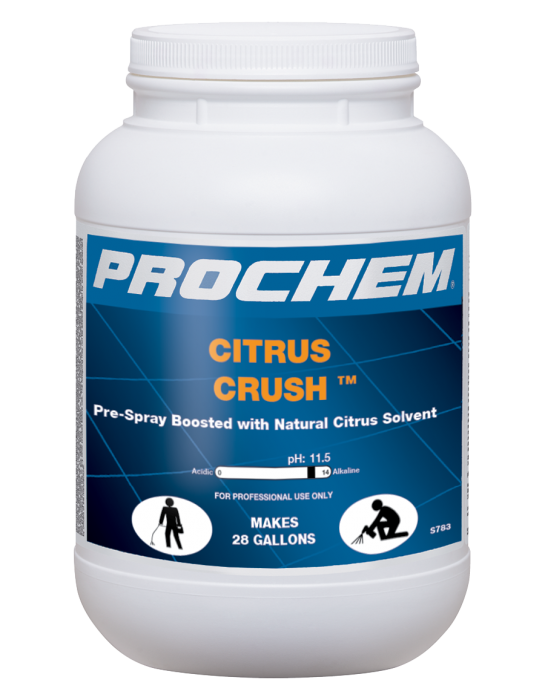 The perfect blend of cleaning agents and d-Limonene absolutely crushes oily soils! Tests have shown that Citrus Crush easily outperforms the competition. Developed to tackle the filthiest oil-loving carpets, including polypropylene.