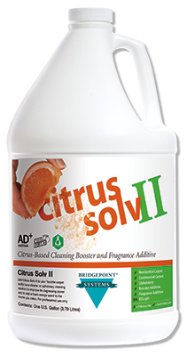 Citrus Solv II is a powerful general-purpose degreaser and citrus fragrance additive for carpet and upholstery cleaning solutions. Citrus Solv II takes all the features customers loved about the original Citrus Solv, especially its natural orange scent and powerful degreasing, and improves them using the latest advancements in chemistry.