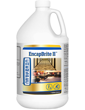 Mild acid pH encapsulating cleaner uses the power of hydrogen peroxide to remove spots, spills and stains. Specifically developed for interim maintenance and low moisture cleaning methods, EncapBrite II encapsulates soils and dries to an easy-to-vacuum crystalline powder.