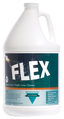 Flex is what you need when it's time to bring in the heavy artillery. Flex is the strongest prespray in the Bridgepoint line. Flex dissolves soils and oils so quickly, that on some carpets, you can actually see it working.