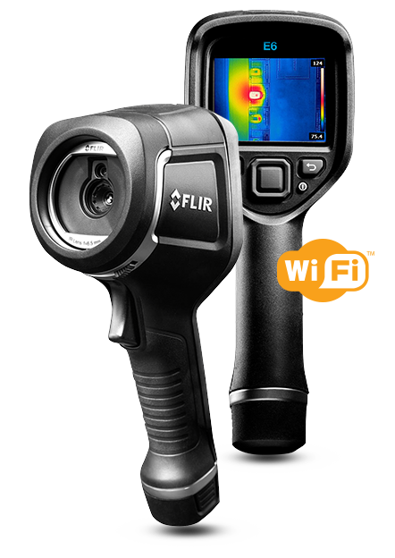 FLIR E4, E5, E6, and E8 infrared cameras are powerful and extremely cost-effective, easy-to-use troubleshooting tools for building, electrical, and mechanical applications. Four resolution options are available (ranging from 80 x 60 IR pixels to 320 x 240) to fi t the target size, working distance, and detail you require. All include MSX® technology that provides extraordinary thermal imaging detail. Wi-Fi connectivity to smartphones and tablets via the FLIR Tools Mobile app makes sharing images and sending reports from any location easier, enabling you to make critical decisions faster. By providing thermal images to help you fi nd hidden problems along with accurate temperature measurements, an Ex-Series camera is the ideal budget-friendly replacement for old-school IR thermometers.