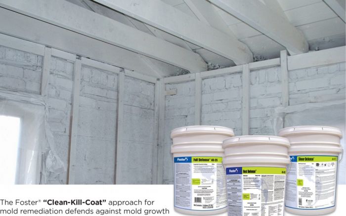 The Foster® “Clean-Kill-Coat” approach for mold remediation defends against mold growth and re-growth on the coating surface long term.
