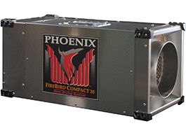 At maximum heat (4-12 Amp Circuits @ 5,000 BTUs each), the FireBird produces 20,000 BTUs – that’s 250 CFM with a 70°F temperature rise. Internal temperature cutouts prevent the FireBird Compact 20 from overheating an area, while the Compact 20’s remote thermostat kit provides a means to control the heat from anywhere in the drying space.