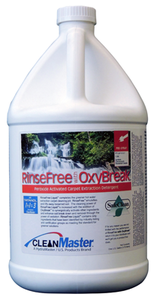 The cleaning power of RinseFree Liquid is increased with the addition of OxyBreak™ to synergistically activate other ingredients and enhance soil break down and removal through the power of oxidation. It does all this without the use of any intentionally added solvents, phosphates or other additives which would disqualify its designation as a greener cleaning solution. RinseFree Liquid with OxyBreak™ is effective to use and meets the standards of cleaning and care for all synthetic carpet, including warranted stain resistant carpet. It's ultra-concentrated formula makes up to 356 gallons of extraction solution from just one gallon of concentrate.