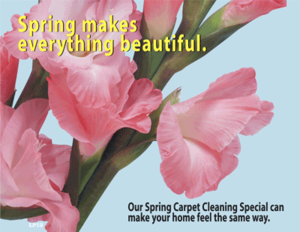 Spring time is a popular time for home owners to have their flooring cleaned. This is a great postcard to send to a purchased mail list to gain new customers during this popular cleaning season. Postcard finished size is 4.25 x 5.5. The back side of this postcard is available for customization. An additional $25 customization fee applies. SPECIAL ORDERING APPLIES AND MUST BE PROCESSED SEPARATELY.